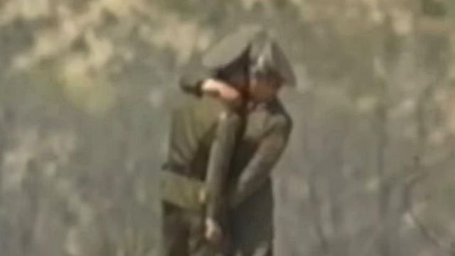 2015년 포착된 북한 남성 군인 두 명이 입을 맞추는 듯한 모습 / TV조선 '황금펀치' 방송화면