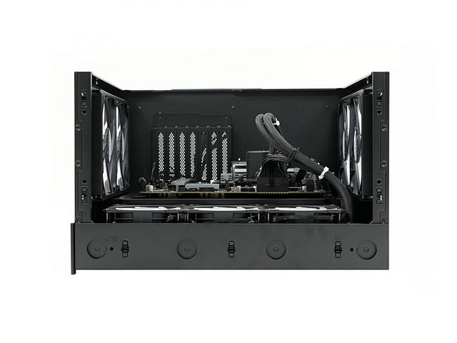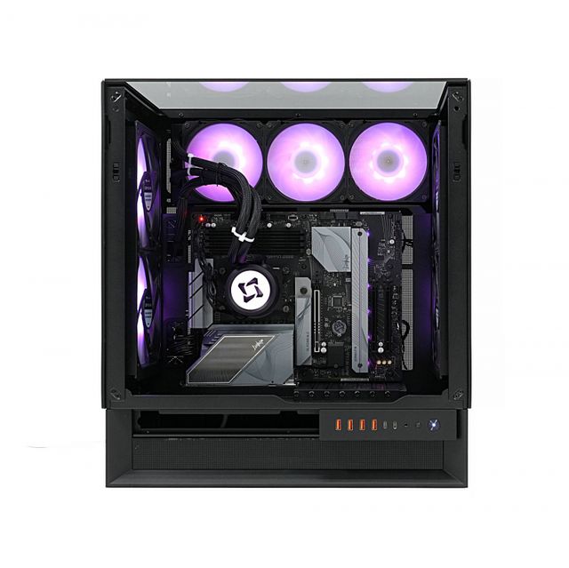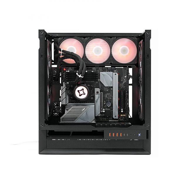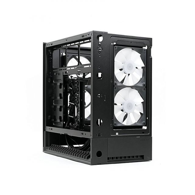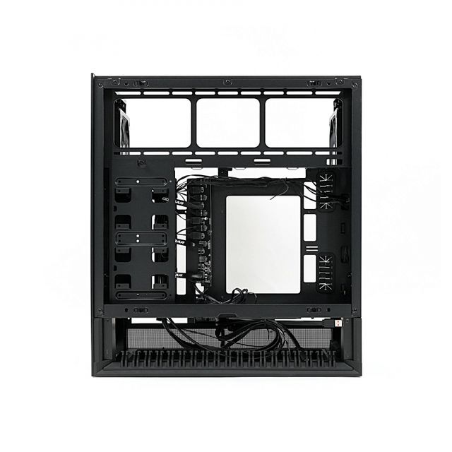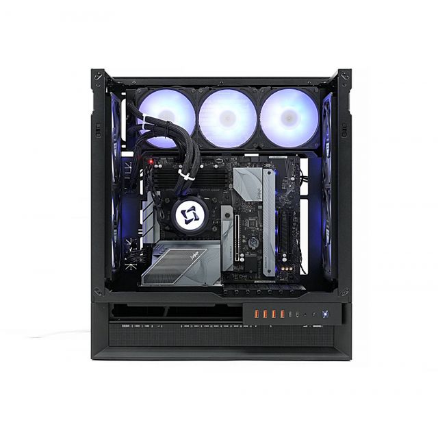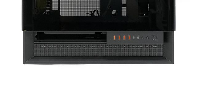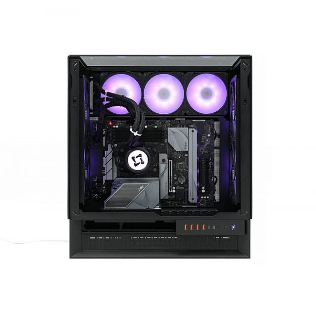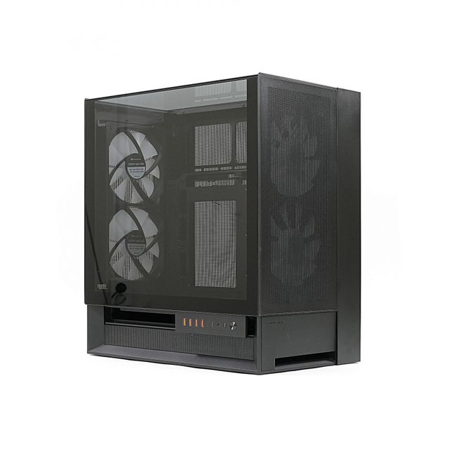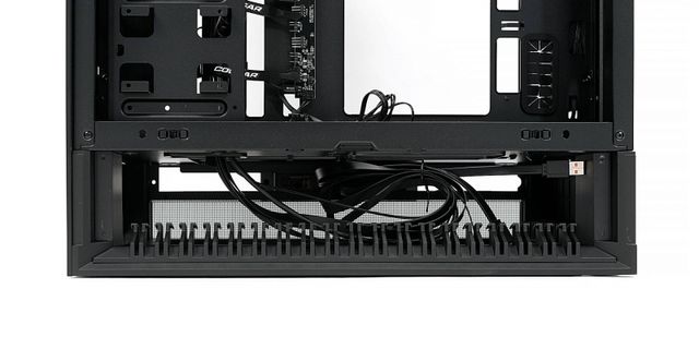 사실 메인보드를 돌려 백패널이 상단으로 오도록 하는 시도는 몇 차례 있었다. 하지만 Omny X는 거기서 한 걸음 더 나아갔다. 후면도 아닌 하단으로 메인보드 백패널을 옮긴 것이다. 그리고 이 상태에서 케이블을 완전히 하단으로 감추는 데 성공했다. 덕분에 어느 방향에서 보아도 케이블이 보이지 않는, 제로 비저빌리티 케이블 매니지먼트가 가능해졌다. 눈에 거슬리지 않아 참으로 마음이 편하다. 아, 시원하다.