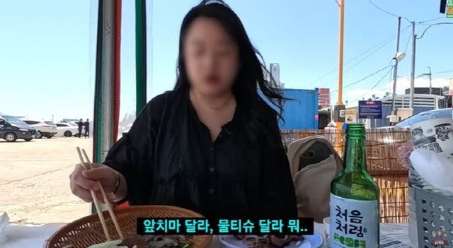 유튜버 A씨는 속초 대표적인 포장마차촌 거리를 찾았고 촬영 동의를 구한 뒤 B식당으로 들어갔다. 그리고 바다가 보이는 가게 바깥 자리에 앉아 오징어회와 오징어 통찜, 술 한 병을 주문했다.