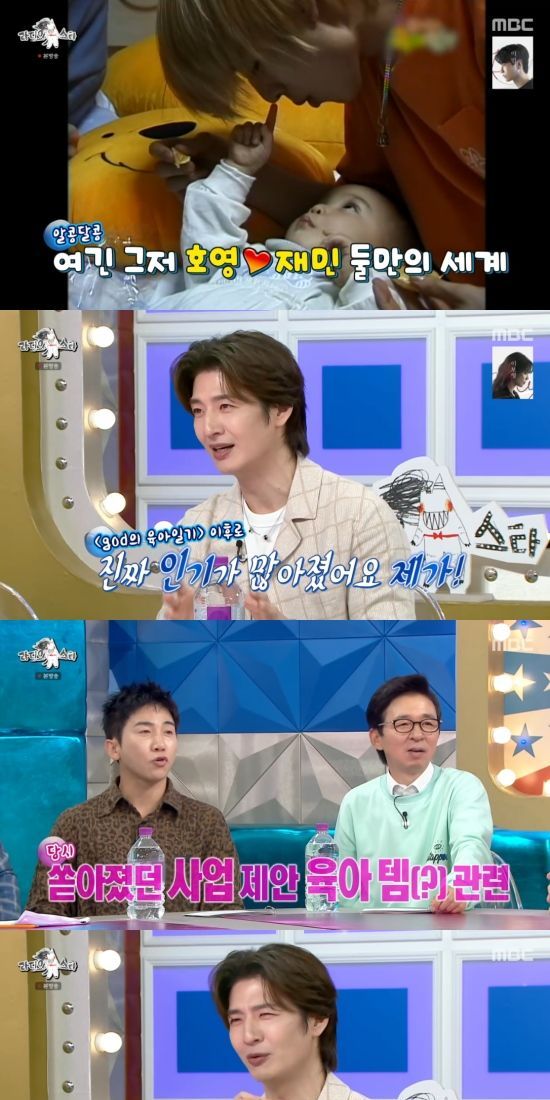 그리고 이날 손호영은 과거 엄청난 인기를 끌었던 'god의 육아일기'를 언급하면서 "저는 촬영을 하지 않을 때도 재민이를 계속 안고 있었다. 그러다보니 재민이가 제 품을 알고 저한테만 안겨있었다. '육아일기' 이후로 제가 인기가 엄청 많아졌었다"고 했다.