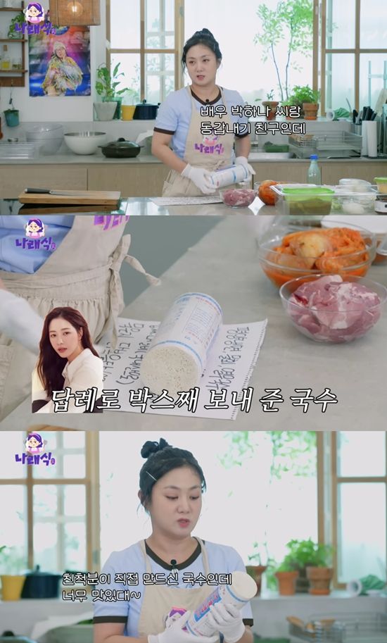 특히 열무국수에 대해선 "얘기 안할 수가 없다"며 "배우 박하나 씨랑 동갑내기 친구인데 이번에 결혼했는데 못 가서 축의금만 보냈더니 고맙다고 국수를 박스 째 보내줬다"고 설명했다.