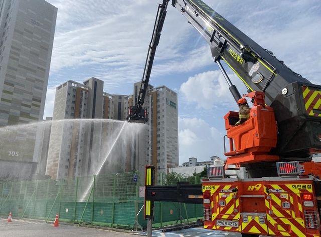 [파이낸셜경제=김영란 기자] 서산소방서는 최근 부산에서 발생한 노후 아파트 화재 사고를 계기로, 고층 화재 대응 역량을 강화하기 위한 사다리차 활용 화재 진압 훈련을 실시했다고 밝혔다.