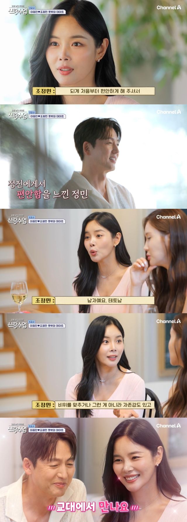 데이트를 마친 이정진과 조정민은 다시 이다해와 심진화를 만나 식사를 가졌는데, 이다해가 조정민에게 이정진이 남자 같냐고 묻자, 조정민은 "남자다. 테토남. 융통성이 없는데 그게 저는 더 좋아 보였다. 누구 앞에서 비위를 맞추거나 그런 게 아니라 자존감도 있고 그 사람도 존중해주는 느낌이다"라며 극찬했다.