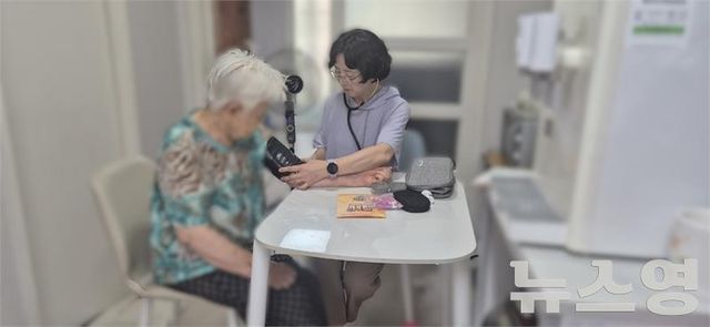 안양시의 방문 전담 간호사가 노인 건강을 체크하고 있다./사진=안양시