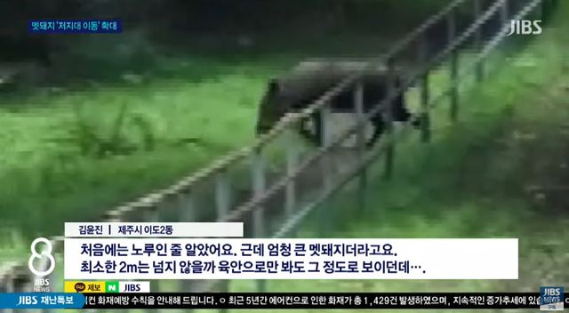 목격자 김윤진 씨는 JIBS 제주방송에 "처음에는 노루인 줄 알았다. 근데 엄청 큰 멧돼지더라. 최소한 2m는 넘지 않을까 육안으로만 봐도 그 정도로 보이던데..."라고 당시 상황을 전했다.
