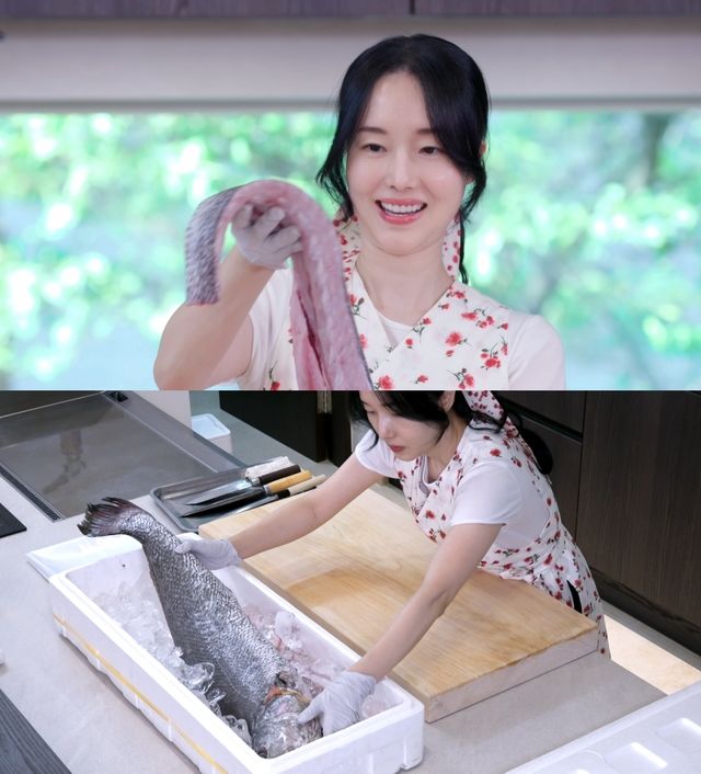집에서 전문가 못지않은 칼질 실력으로 초대형 민어 해체에 도전한 이정현. 만능여신 이정현이 선보이는 초특급 여름 보양식 민어 풀코스는 8일 오후 8시 30분 방송되는 ‘신상출시 편스토랑’에서 공개된다.