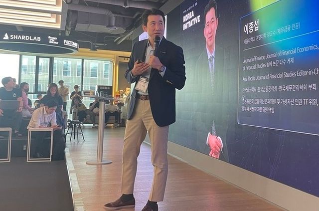 7일 서울 강남 해시드라운지에서 열린 '디지털 G2를 향한 첫 걸음' 포럼에서 이종섭 서울대 경영학과 교수가 발표를 진행하고 있다. = 김정후 기자