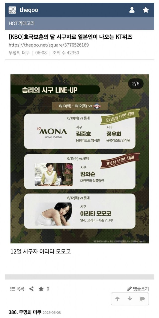 6월은 호국보훈의 달이라며 어떻게 일본인이 시구를 하냐며 항의