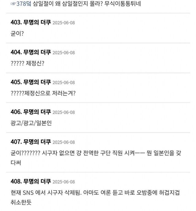 광복 일주일 전인데 미쳤냐며 당장 취소하라는 우리의 언냐들