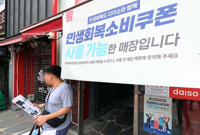 3일 서울의 한 다이소 매장에 민생회복소비구폰 사용 가능을 알리는 문구가 걸려 있다. / 뉴스1