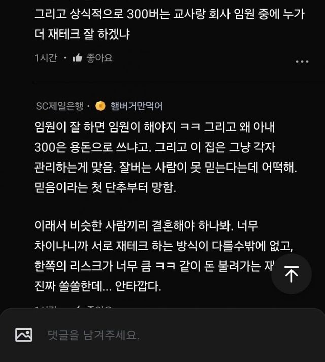 여자도 300이니 잘벌긴하는데 남자 월2000은 ㅁㅊㅋㅋㅋ