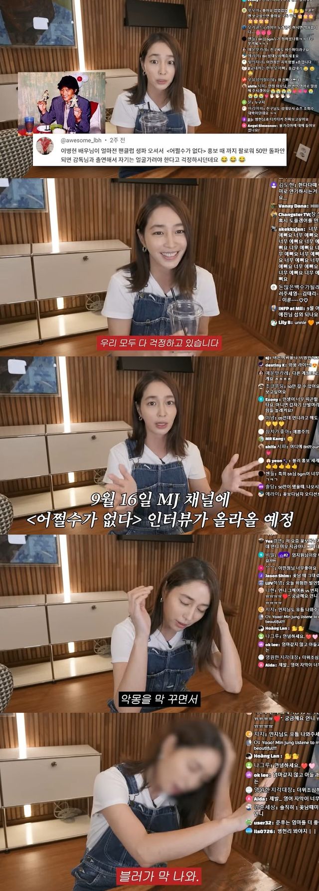 이민정은 악몽을 꿀 정도로 남모른 스트레스를 받고 있다고. 그는 "제가 자다가도 악몽을 꾸면서 꿈에서 막 블러가 나온다. '으악' 이러다가 깨고, 깨고 나서 '이놈의 조동아리 진짜 어떻게 해야 하나'라는 생각을 하면서"라고 털어놨다.