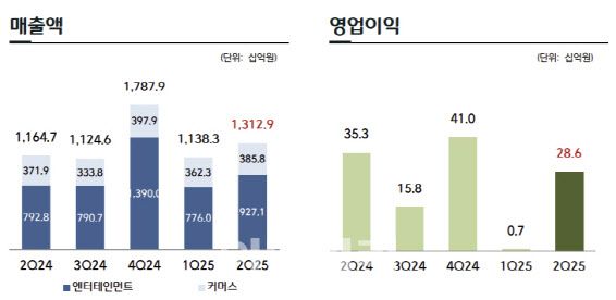 엔터테인먼트 사업은 콘텐츠 시청률 및 화제성 개선, 미국 스튜디오 피프스시즌(FIFTH SEASON) 흑자 전환, 일본 라포네 엔터테인먼트 호실적 등을 기반으로 수익성을 회복하고 있다.