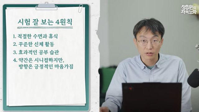 5일 정 총괄관은 유튜브 ‘정희원의 저속노화’ 채널을 통해 ‘시험 잘 보는 4원칙’을 공개했다.