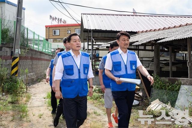 이재준 시장은 7일 공사가 이뤄질 현장을 확인하고, 민원을 제기한 전상옥씨, 입북동 주민자치회장, 통장협의회장 등을 만나 이야기를 들었다.