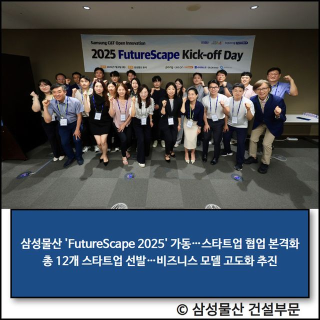 삼성물산(028260) 건설부문(이하 삼성물산)은 오픈이노베이션 프로그램 '2025 FutureScape'를 통해 유망 스타트업을 발굴하고 협업을 본격화한다고 7일 밝혔다.