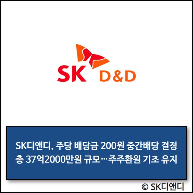 상장 이후 SK디앤디는 꾸준한 주당배당금(DPS) 상승을 이어왔다. 지난 2022년부터는 중간배당 제도를 도입해 주주 가치를 높이고 있다. 최근에는 리더스인덱스와 아이에셋경제연구소가 공동 발표한 주주친화지수 조사에서 안정적 성장성과 투명한 지배구조 등을 인정받아 전체 상장사 중 10위를 기록하기도 했다.