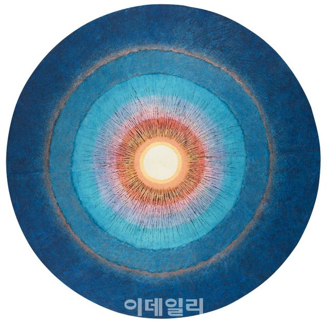 작품의 스케일 또한 점점 확장했다. 평면에 머물던 회화는 공간 전체를 품는 설치작업으로 발전했다. 그림을 원통형 구조물로 말아 천장에 매달기도 하고 때로는 바닥에 눕혀 설치했다. 벽에 걸려 있던 화면은 하늘과 땅으로 확장하며 마치 하나의 성소처럼 공간을 감쌌다. 일흔이 넘은 나이에도 회화를 바탕으로 설치로 나아간 것은 그의 놀라운 동시대적 감각을 보여준다.