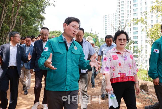 8일 경기 용인시에 따르면 ‘한숲산내음근린공원 정비사업’은 지난해 11월 이상일 시장이 처인구 공동주택 입주자 대표들과의 간담회에서 한숲시티 3단지 주민 대표가 공원 내 배수로가 좁아 옹벽에서 물이 새고 토사가 아파트 단지로 흘러내리는 등의 문제가 있다고 하자 현장 확인 및 개선 조치를 지시한 데 따른 후속 조치로 진행됐다.