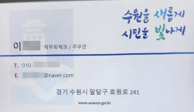[와이뉴스] 수원시에서 인테리어 업체를 운영하는 A씨는 얼마 전 ‘수원시 공무원’이라고 자신을 소개한 사람으로부터 수의계약 공사를 제안받았다. 이 사람은 ‘이OO 수원시청 재무회계과/주무관’이라고 적힌 가짜 명함을 제시하며 접근했고, 공사 수주에 필요하다며 A씨에게 통장사본, 사업자등록증과 계약보증금 명목으로 금전을 요구했다.