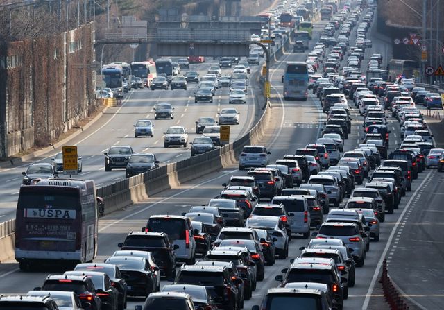 설날인 29일 오후 서울 서초구 잠원IC 인근 경부고속도로 하행선이 정체를 빚고 있다. 한국도로공사에 따르면 이날 전국 고속도로 교통량은 639만대로 귀성길 정체는 오후 2~3시께 절정에 이른 뒤 오후11시~자정께 풀리며, 귀경길 정체는 오후 4~5시께 절정에 달해 30일 오전 1~2시께 해소될 전망이다. 2025.01.29. [서울=뉴시스]