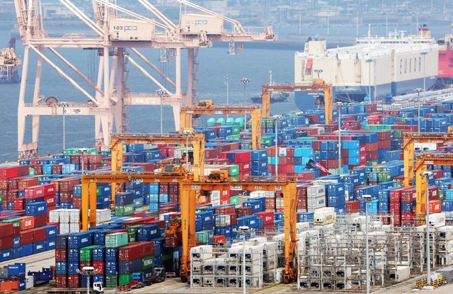 7일 경기 평택시 포승읍 평택항에 수출용 컨테이너가 쌓여있는 모습. 뉴스1