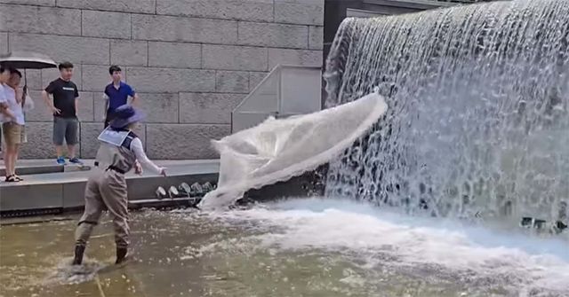 청계천 생태계를 확인하기 위해 투망을 치는 모습. / 'TV생물도감' 유튜브