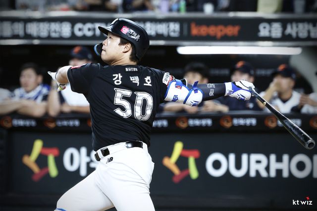 지난 5일에도 2-2에서 5-2 만드는 결승타를 쳤던 강백호는 이날도 4번 지명타자로 선발 출전, 승부를 뒤집는 결정적인 홈런 포함 2안타 2타점 1득점을 기록하며 이번 시리즈의 주인공이 됐다. 3경기에서 14타수 6안타(1홈런) 7타점 1득점을 기록했다.
