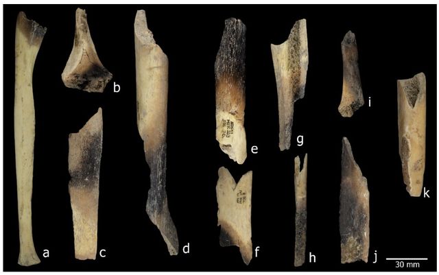 뼛조각 222개에서는 열에 의한 색 변화가 발견됐다. 이는 장례 중 화장 흔적일 가능성도 있지만, 그보다는 먹기 위해 불에 굽거나 조리하면서 생긴 흔적일 가능성이 더 큰 것으로 연구팀은 추정했다.
