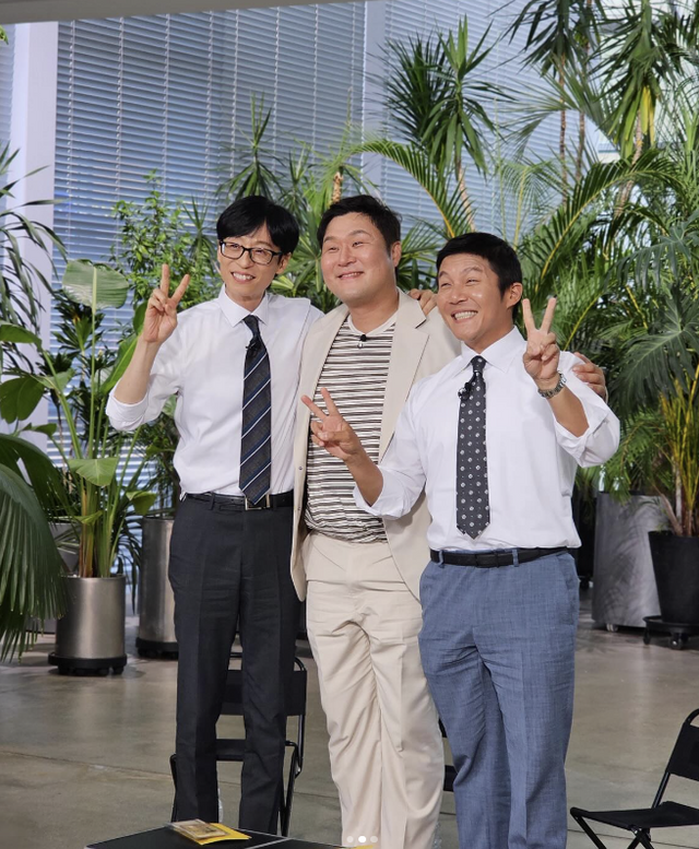 함께 공개한 사진에는 tvN 예능 ‘유퀴즈’의 MC유재석, 조세호와 함께 포즈를 취하고 있는 윤경호의 모습이 담겨있다.