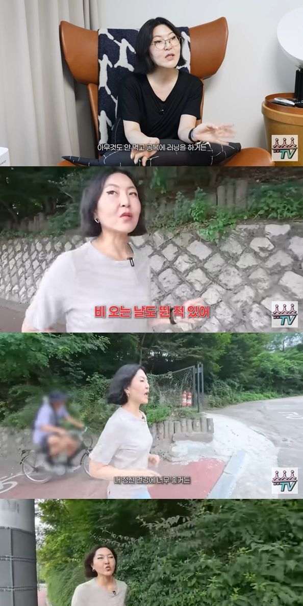 제작진이 "매일 아침 뛰 면 안 힘드냐"고 하자 한혜연은 "힘들다"면서도 "근데 어떡하냐. 해야지. 비 오는 날도 뛴 적 있고 이사하는 날도 뛰었다. 어디 마라톤 나갈 거 아니고 그냥 이런 가볍게 뛰는 게 내 정신 건강에 너무 좋다"고 답했다.