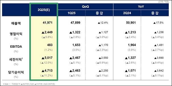 첨단소재는 매출 1조455억원, 영업이익 560억원을 기록했다. 관세 불확실성에 따른 전방산업 수요 둔화로 판매량과 스프레드가 축소되면서 전분기 대비 수익성이 감소했다. 향후 지속적으로 고객 맞춤형 고부가 스페셜티 소재 공급을 확대해 나갈 계획이다.