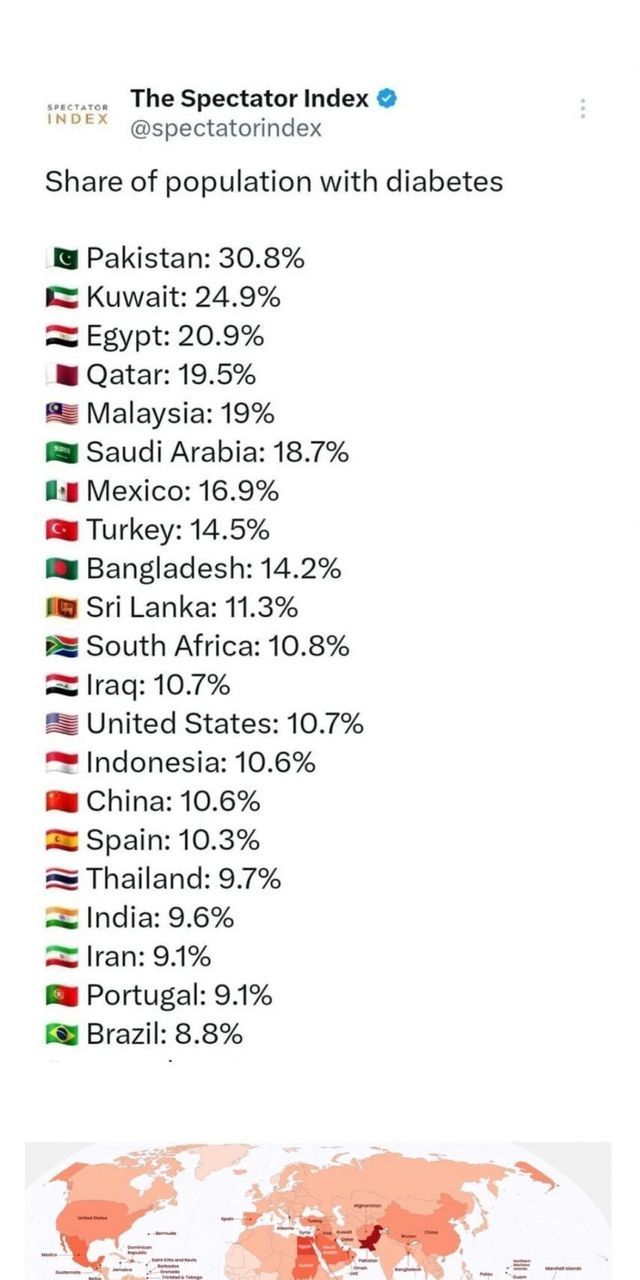 당뇨환자 비율이 높은 나라들 ㄷㄷ