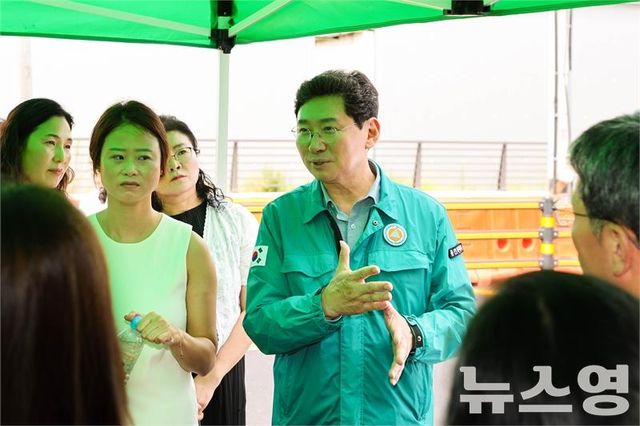 이상일 시장은 8일 오후 처인구 유방동 485-7번지 일원 공사 현장을 찾아 공사 관계자로부터 진행 상황을 보고받고, 도로 정비 상태와 통행 안전성 등을 꼼꼼히 살폈다.