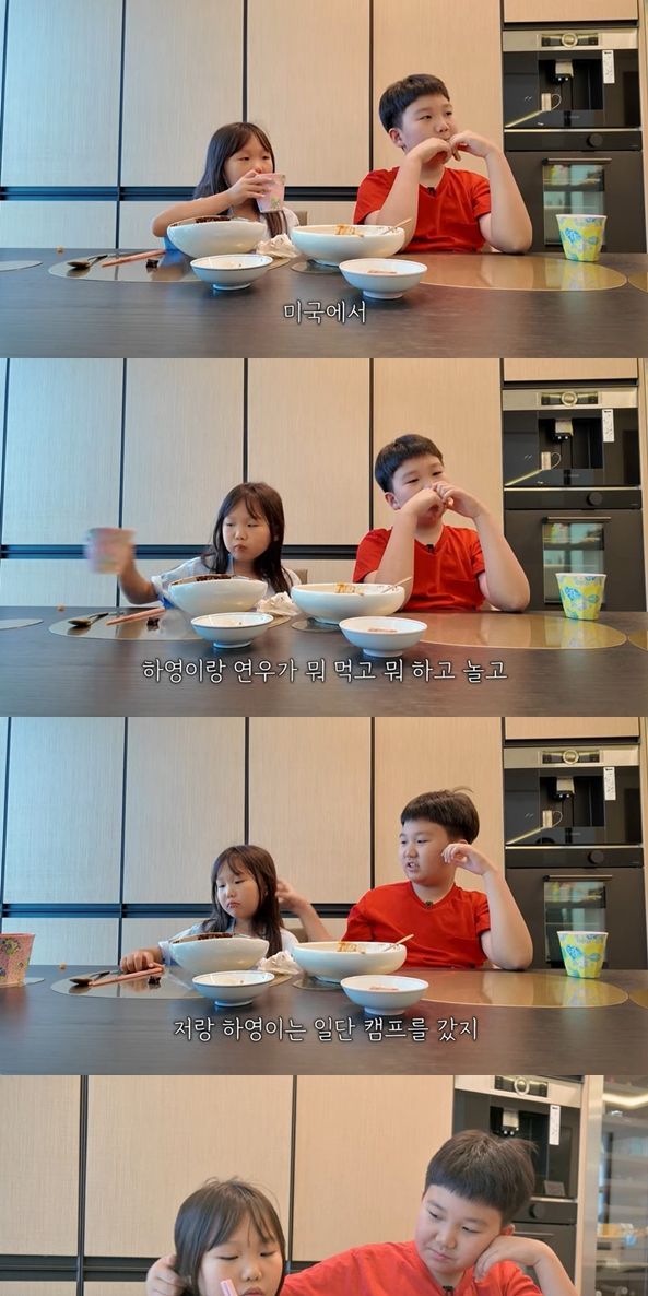 이에 아들 연우는 "일단 저랑 하영이는 캠프를 갔다"면서 동생에게 "그때 뭐 배웠냐"고 물었고, 하영은 "나는 거기서 안 배웠다. 놀았다"고 말해 눈길을 끌었다.