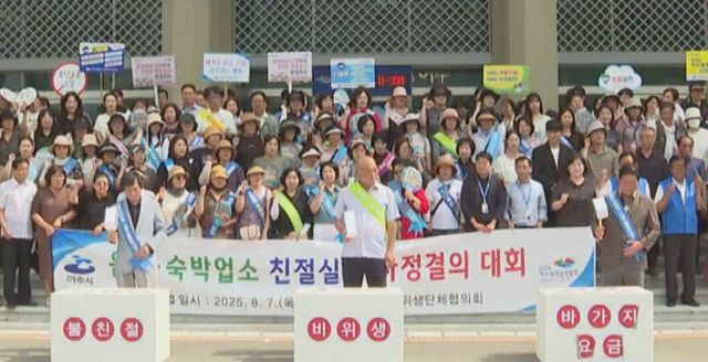 여수에서는 전날 관광지 이미지 추락을 우려한 지역 식당·숙박업소가 자정 결의대회를 열기도 했다. 앞서 한 유명 식당에서 2인분을 시키고 식사 중인 유튜버에게 주인이 “식사를 빨리하라”며 이해하기 힘든 대응을 한 사실이 알려져 논란이 됐고, 1박에 40만원을 받는 리조트형 호텔에서 ‘걸레’라 적힌 수건을 손님에게 제공한 일도 최근 드러난 영향이다.