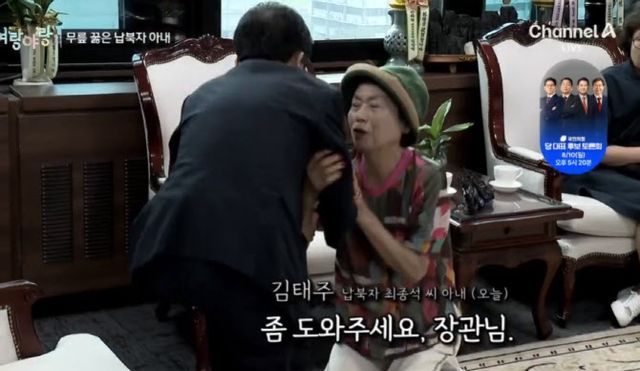 김씨는 정 장관 앞에 무릎을 꿇고 “이렇게 무릎 꿇고 말씀드린다. 좀 도와달라”며 흐느꼈다. 김씨의 호소를 듣던 다른 납북자 가족과 귀환 납북자도 눈시울을 붉히면서 이내 눈물바다가 됐다.