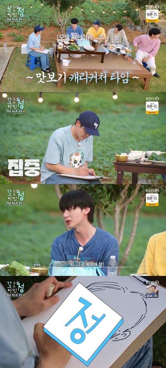 영탁은 "목젖이 좋구다. 서태웅같이 생겼다. 완전 에이스"라며 안재현의 비주얼을 칭찬했다. 이에 이민정은 "진짜 잘 그린다. (안재현은) 서태웅이고, 정현은 정대만 같이 생겼다"라고 밝혔다. 이민정의 칭찬에 김정현은 "감사합니다"라고 답했다.