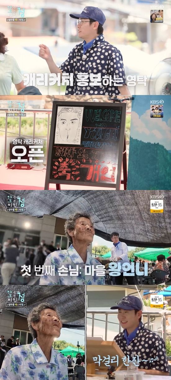 다음날 영탁은 마을 어르신들을 모시고 "식사하시다 심심하시면 제가 그림을 그려드리겠다. 저한테 오시면 된다"라며 캐리커처를 진행했다.