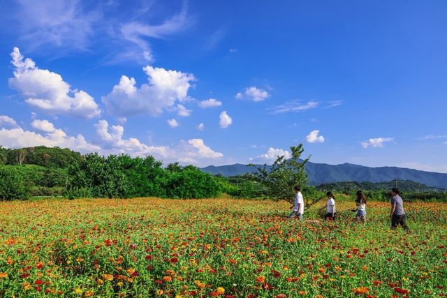 경북 청도군 이서면 양원리 일대에도 백일홍이 가득 피어난다. 이곳은 마을 주민들과 면사무소가 함께 힘을 모아 정비한 꽃밭으로 진한 색감의 백일홍이 한여름 햇살과 어우러지며 풍성한 여름 경관을 연출한다. 마을 어귀를 따라 조성된 꽃밭은 산책길을 따라 이어지며, 자연 속에서 여유롭게 시간을 보낼 수 있는 공간으로 사랑받고 있다.