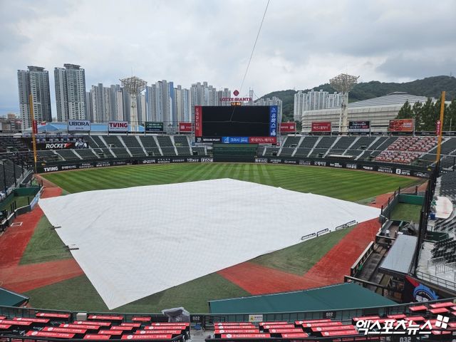 변수는 날씨다. 오후 2시 20분 현재 부산 사직야구장에 빗방울이 조금씩 떨어지는 중이다. 그라운드에는 대형 방수포가 깔려 있다. 기상청 발표에 따르면, 10일 오전까지 계속 비 예보가 있는 만큼 두 팀 모두 날씨를 계속 지켜봐야 한다.