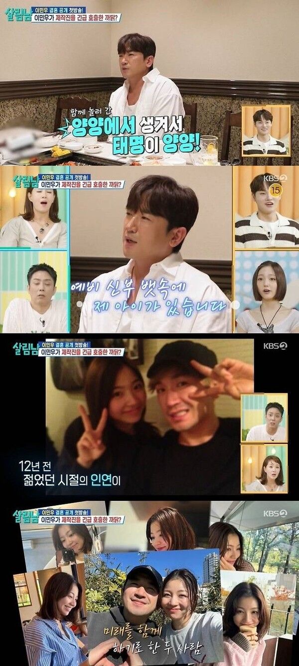 뉴시스 보도에 따르면, 이민우는 9일 방송한 KBS 2TV '살림하는 남자들' 시즌2에서 "이제 장가 간다"며 "2013년 1월 일본투어 일정을 마치고 지인을 만나는 자리에서 만났다. (신부가) 홑몸이 아니다. 뱃속에 아이가 있다. 2018년 그 친구를 본 게 마지막이었다. 오랜만에 연락을 했는데, 힘든 시간을 보냈더라. 딸도 있고 이혼도 했다"고 털어놨다.