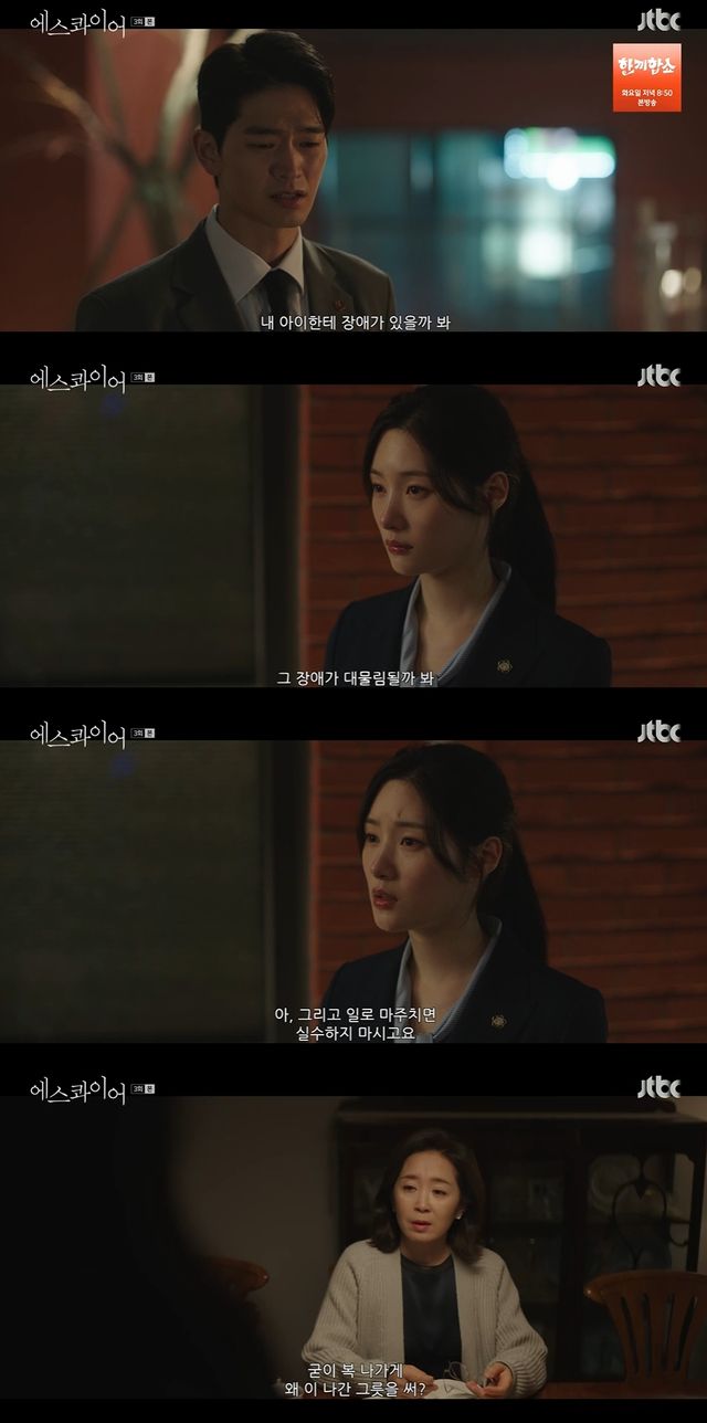 9일 방송된 JTBC 토일드라마 '에스콰이어:변호사를 꿈꾸는 변호사들'에서는 강효민(정채연 분)이 한성찬(강상준)에 선을 긋는 모습이 전파를 탔다.