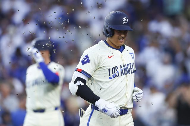 이날 3회 두 번째 타석에서 중전 안타로 타격감을 조율한 오타니는 5회 손맛을 봤다. 2-0으로 앞선 1사 주자 없는 상황에서 오른손 선발 크리스 배싯의 5구째 86.2마일(138.7㎞/h) 슬라이더를 걷어 올려 가운데 펜스를 넘기는 비거리 417피트(127m) 대형 홈런으로 연결한 것. 볼카운트 3볼-1스트라이크에서 상대 실투를 놓치지 않았다. 이로써 2경기 만에 홈런포를 재가동한 오타니는 3년 연속이자, 다저스 이적 후 2년 연속 40홈런을 달성했다.