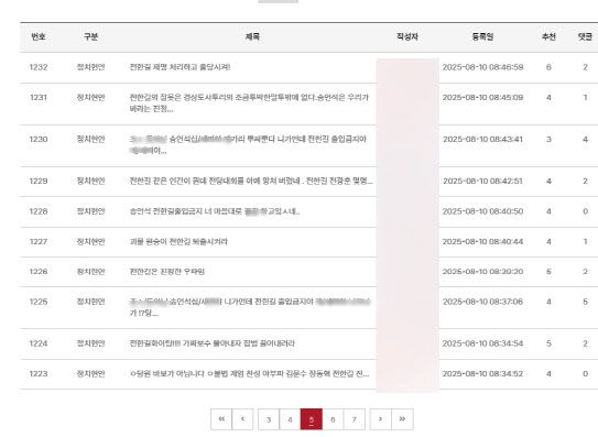 ◇ 전한길 징계 당원게시판 찬반 폭발…물리적 충돌 우려도