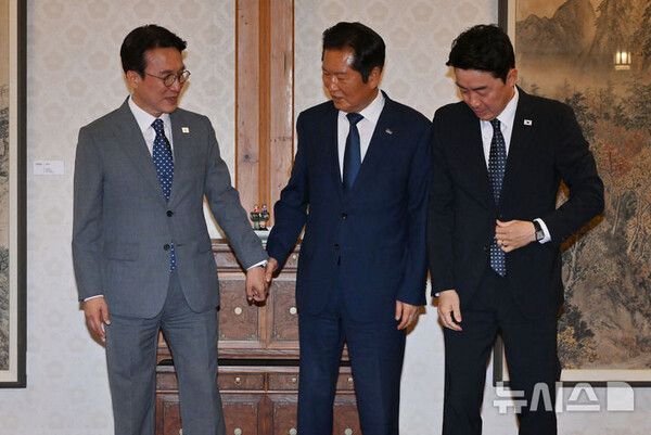 특히 강 실장은 지난달 30일 타결된 한미 관세협상에 대해 "큰 틀에서 합의를 이뤘지만 세부적인 후속 절차가 남았기 때문에 당정대가 원 팀이 돼 총력대응할 필요가 있다"며 특히 "후속조치 이행과정에서 국회의 지원과 협조가 필수적인 만큼 당의 각별한 관심과 지원을 요청드린다"고 밝혔다.