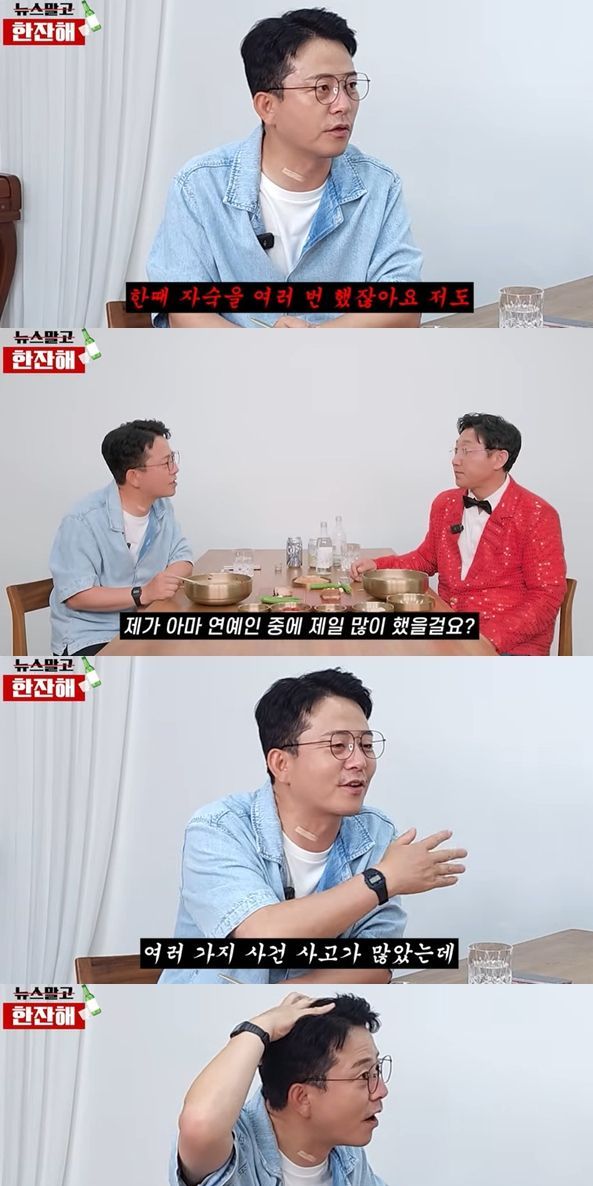 김준호는 "한때 자숙을 여러 번 했지 않냐. 제가 아마 연예인 중에 제일 많이 했을 거다. 본의 아니게 여러 가지 사건 사고가 많았는데, 사건 터졌을 때 후배들 앞에서 여유 있는 척했다"면서 과거를 회상했다.