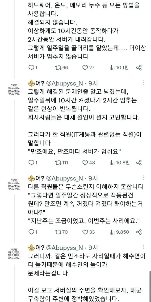 아니 c발 달때문에 서버가 멈췄다니까요?,,