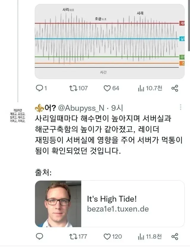 조석 간만의 차가 최대일 때 서버실이 해군 구축함과 같은 높이에 위치