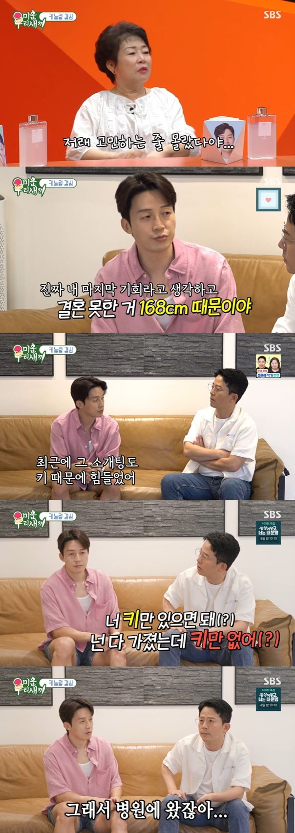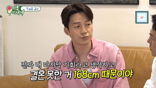 허경환은 "마지막 기회라고 생각한다. 결혼 못 한 거 168cm 때문일 수 있다. 마지막 스퍼트를 해야 한다. 키 때문에 망설이는 여자들 몇 명 있었다"며 "최근 소개팅도 키 때문에 힘들었다"고 위축됐던 마음을 드러냈다.